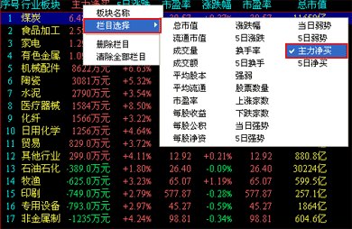如果你想看看主力资金涌向的热点, 你也可以改变界面的默认状态,跟踪主力资金,选择主力锁定的板块个股!