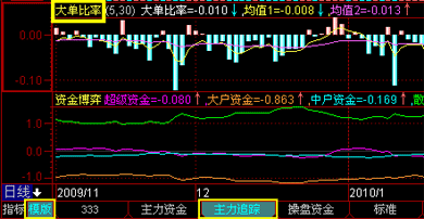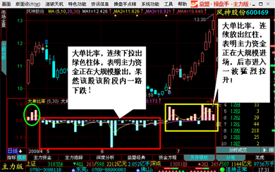 大红柱连续数日连续放出,就是介入良机!不管K线形态或是成交量如何,一旦大单比率接连下拉绿柱,危险!主力正在出货,赶紧出来!死死盯住主力,震仓拉涨也甩不掉你,涨幅里头总有你的一杯羹!