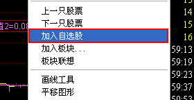 个股分时走势图/操盘线界面:右击鼠标,选择“加入自选股”。