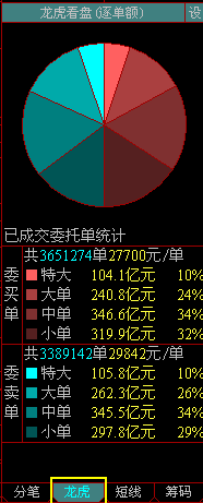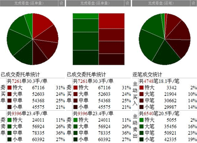 龙虎看盘分为逐单龙虎看盘和逐笔龙虎看盘,逐单龙虎看盘建立在逐单分析的基础上,而逐笔龙虎看盘则是对主动性成交的分类统计。可以将龙虎看盘看作是图形化的成交统计,给投资者以更加直观的印象。