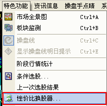 菜单栏——“特色功能”——“性价比换股器”