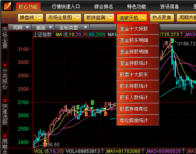 位于菜单栏中的道破天机功能,共有8张图表构成。这8张图表能够从各个角度帮助股民了解基金上季度持仓、减仓等行为,为股民安全跟庄提供了保障。