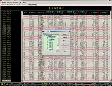 第1步:打开软件道破天机功能,选择基金持股统计数据。例如:08年2季度,增量资金为“负”(也就是呈现绿色的)的有166家,选中这166家单击右键加入到自选股板块“08年2季度减仓”中。