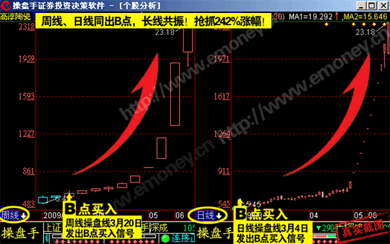 ◎ 操作方法: 个股周线发出买入信号,同时日线也发出买入信号,意味着该股中长期趋势看好,后市很可能出现大的上涨波段;此时按照“看大做小”原则操作,获利几率将大大提高。 ◎ 适合行情: