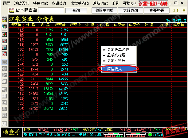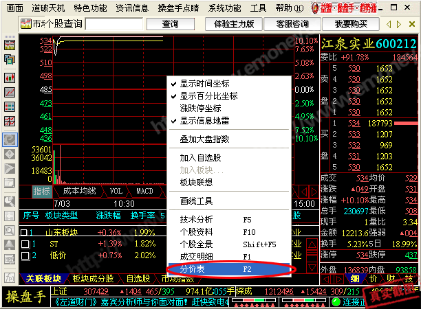 1、个股分时走势图界面,右击鼠标选择“分价表”。
