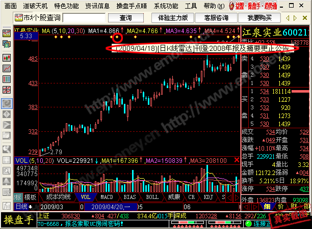 1、大盘、板块、个股K线状态下,顶部出现的黄色菱形小点为“信息雷达”。提示大盘、板块、个股当天公布的重要信息、通告、新闻等。