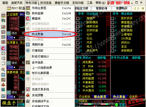 热点聚焦功能,罗列各类型板块中的热点,采用“交集”或“并集”法进行交集,选出双重,甚至多重热点的个股,市场关注度更好,自然走势更有望看好!