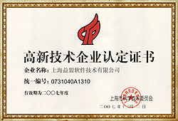 2008年11月 上海益盟软件技术有限公司 被评为“高新技术企业” |